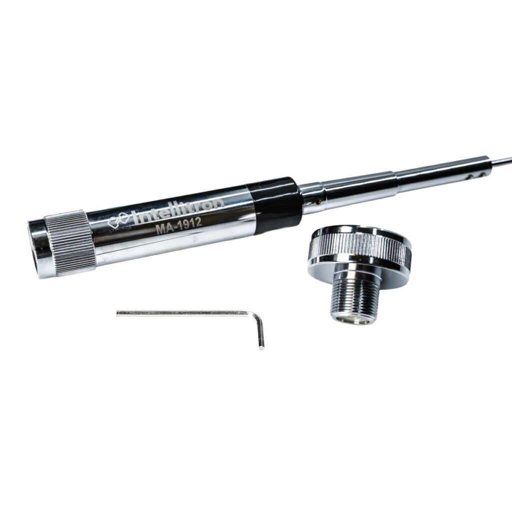 True to the Intellitron motto, “Expertly Built, Economically Priced,” this antenna offers professional-grade construction without the high-end cost. The MA-1912 is remarkably versatile; it comes equipped with a standard UHF (PL-259) connector for direct installation and includes a specialized UHF (SO-239) to NMO adapter, allowing you to interface seamlessly with existing NMO mounts. Its 1/2 wave design on 2 meters delivers a stable radiation pattern, while the 5/8 wave configuration on 70cm provides the extra gain needed for superior UHF range. With its sleek finish and durable build, this antenna is ready to handle highway speeds and harsh weather while keeping you in the logs. Available in both classic chrome and a sleek black finish (MA-1912B), it is built to handle highway speeds and tough weather conditions.